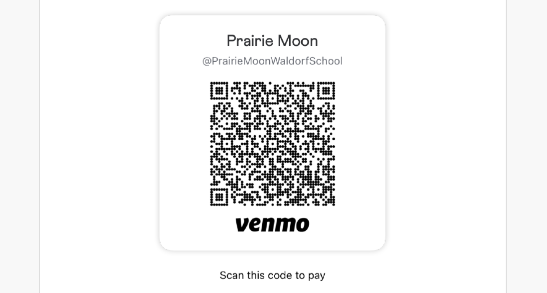 Find our username below, or use your phone to scan the QR code to open our Venmo page!